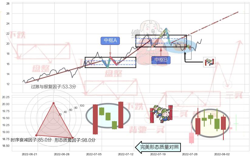 ➢ 曙光初现形态 🔜 缠论中枢点突破中枢B阻力拉升 综合量化分数:53.80 【偏多】