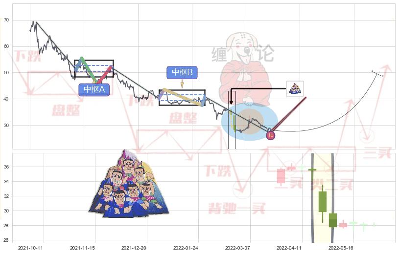 ➣ 缠论买卖点:下降缠中枢AB形成后猜想拐点1买已到达,猜想后续持续拉升(均值回复)