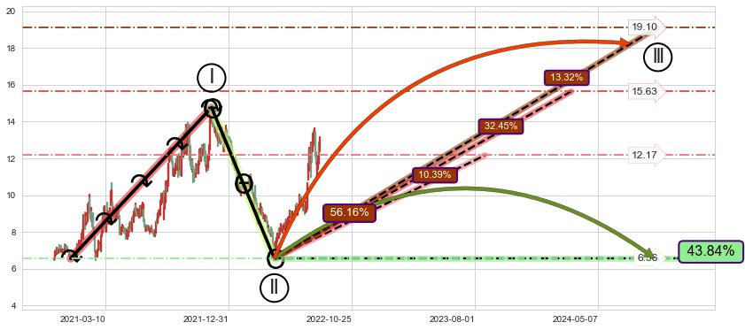 ♘ 支撑价格位10.58,可信任强度49.25%,距离最后交易2022-08-12形成的收盘价格12.67相差 -16.49%