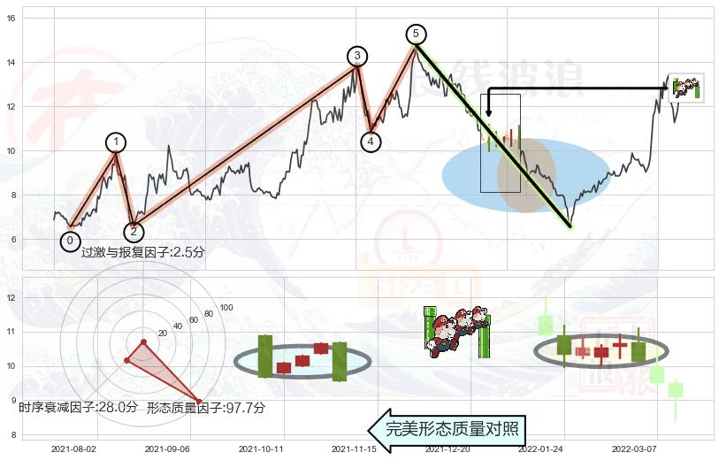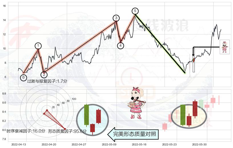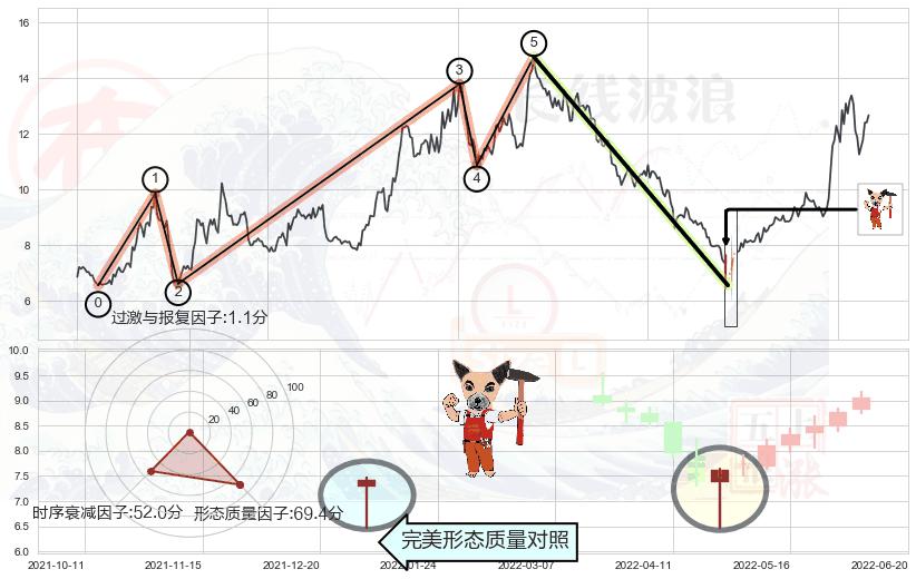 ➢ 🕰 价格走势在2022-05-16至2022-06-13期间形成低档五阳线,残存影响值:1.99