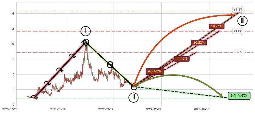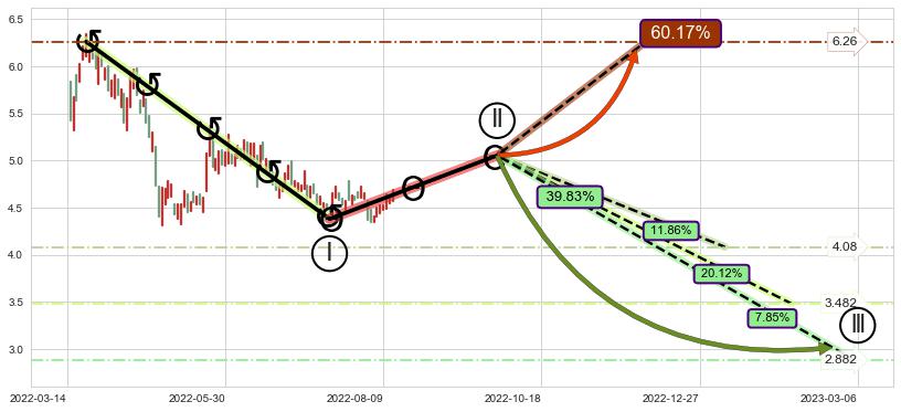 ➣ 循环浪继续向下【平均值】位置(2023-02-06, 3.482),匹配聚类样本比例50.51%, 可能性概率20.12%