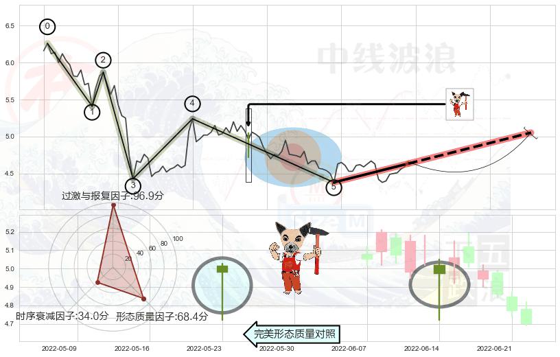➣ 旭日东升 + 波浪理论下跌浪:浪5反弹拐点信号叠加后【信号初始稳固度】中等,【看多】信号叠加【可信度影响中等】