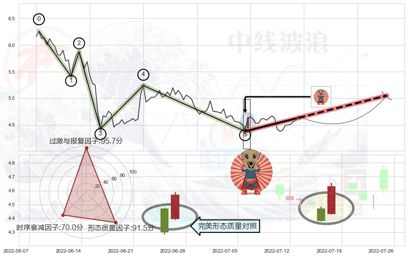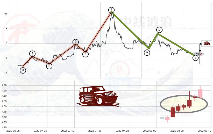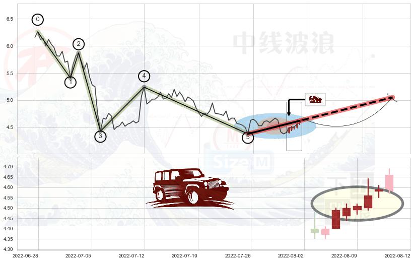 ➢ 🕰 价格走势在2022-08-05至2022-08-11期间形成低档五阳线,残存影响值:5.91