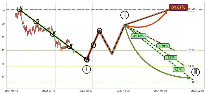 ➣ 大趋势循环浪继续向下概率38.13%