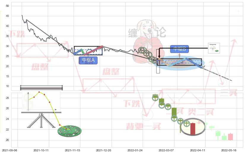 ➢ 【中枢B】:2022-03-29-2022-08-03,中枢由5笔构成,共86交易日, ZG=23.62, ZD=22.47