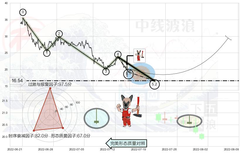 ➢ 🕰 价格走势在2022-06-20至2022-06-27期间形成顶部尽头线(下山虎),残存影响值:-4.86