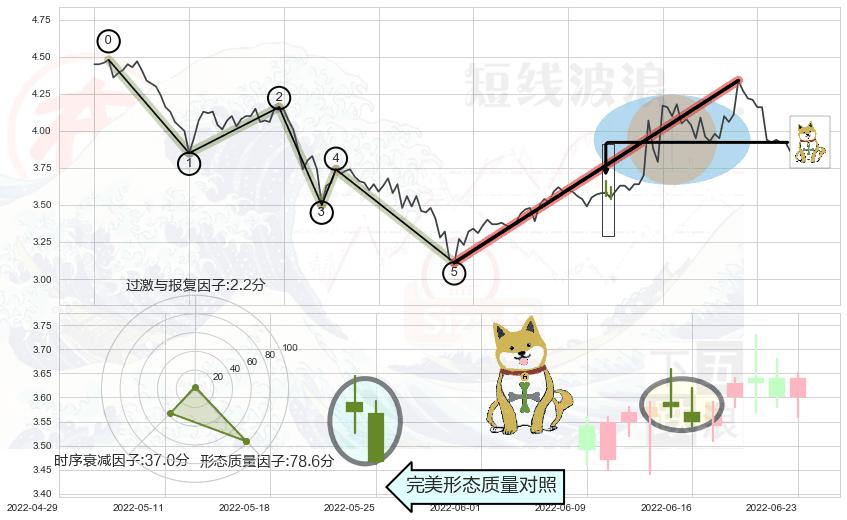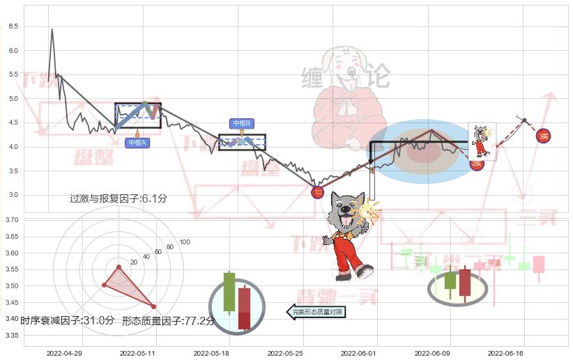 ➢ 🕰 价格走势在2022-06-14至2022-06-14期间形成锤头线(锤子线),残存影响值:2.30