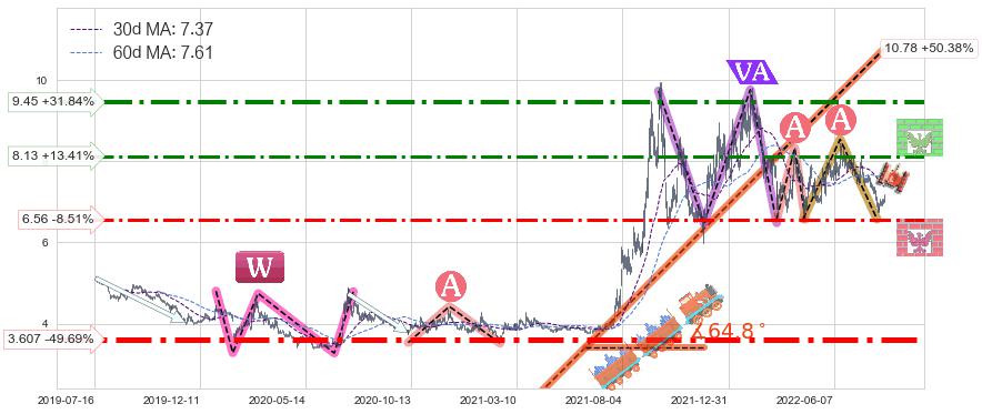 ♞ 30日均线:7.37,60日均线:7.61→ 快线<慢线