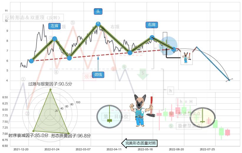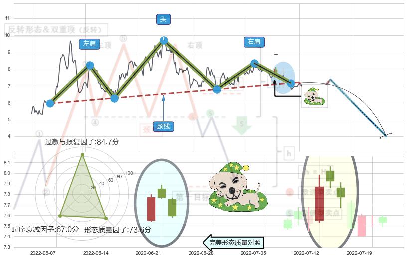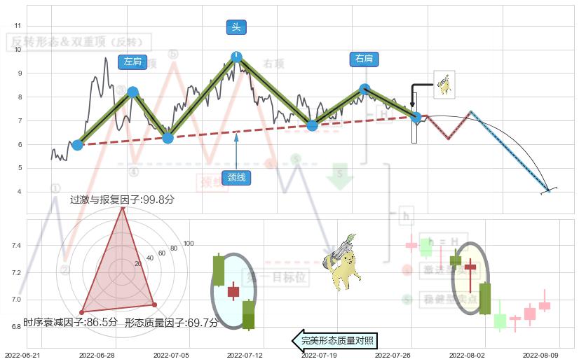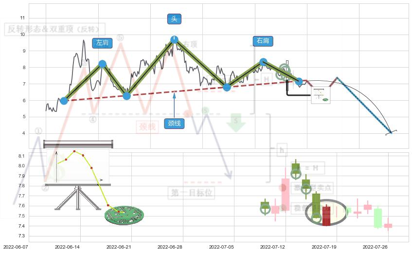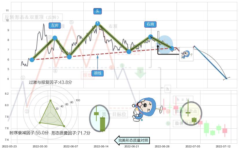 ➢ 【卖1】: 激进型 卖点→(2022-08-02: 7.16 )形成突破头肩顶【反转】形态