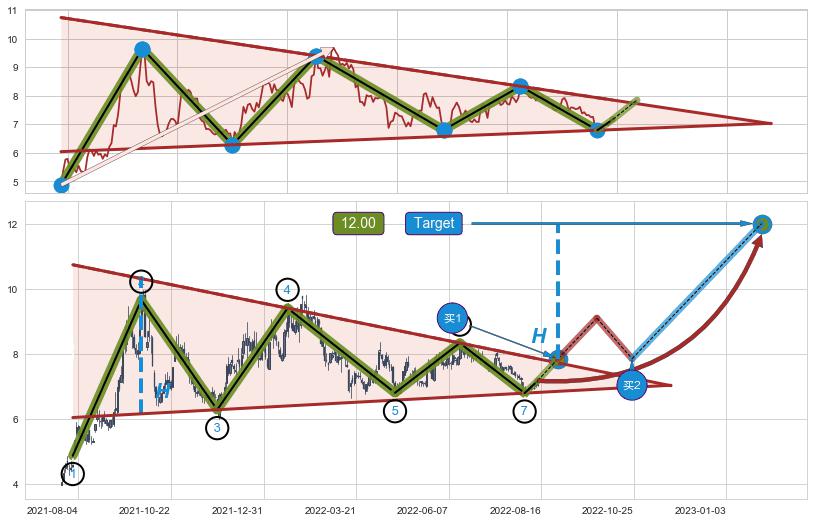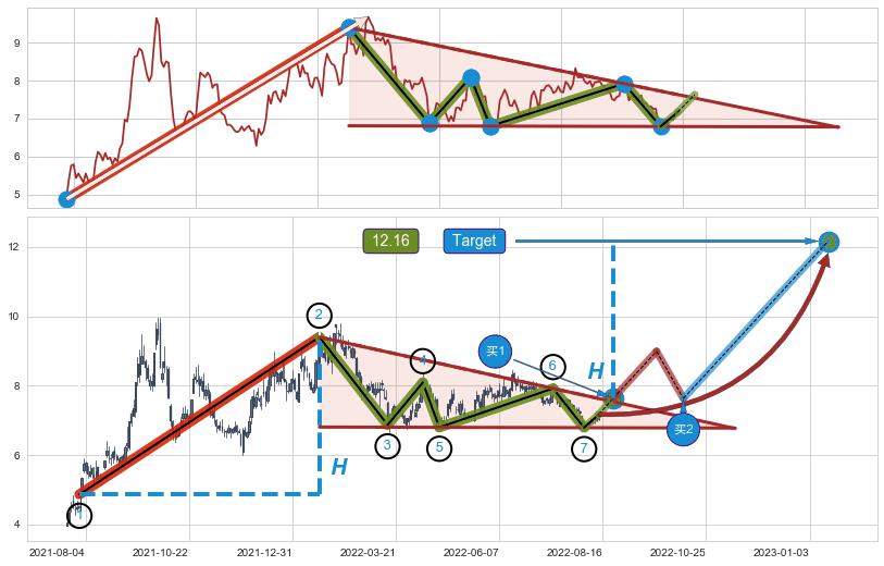 ➢ AI预测: 假定反转启动后, 第❷目标位置(2023-03-29, 7.90)
