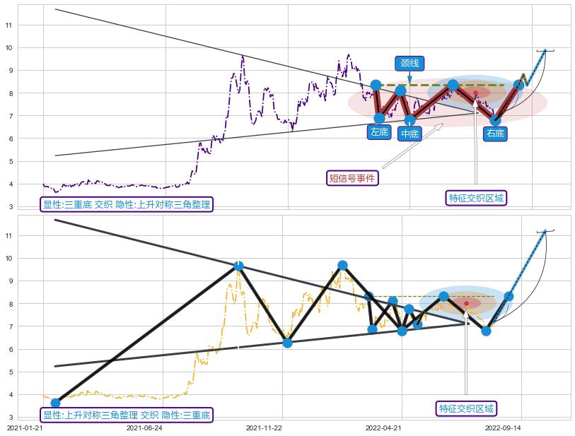 ➣ 【未确认突破,预测即将形成突破】三重底起点:2022-03-10, 预测突破点:2022-08-30,形态共118交易日