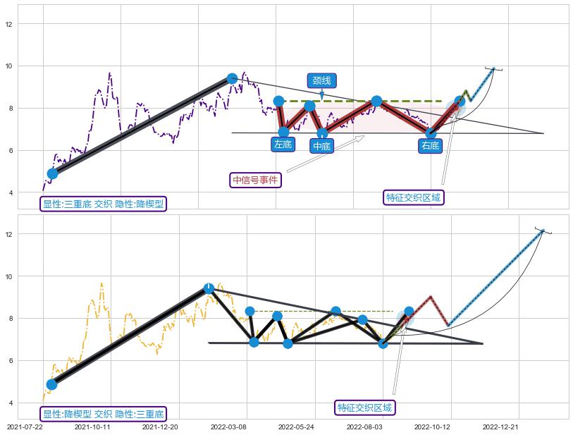➢ 三重底属【短级别信号事件】上升对称三角整理属【长级别信号事件】长短周期组合信号事件, 短长事件长度比34.30%