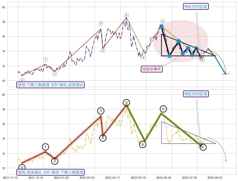 ➢ 下降三角整理属【短级别信号事件】波浪理论属【长级别信号事件】长短周期组合信号事件, 短长事件长度比22.16%