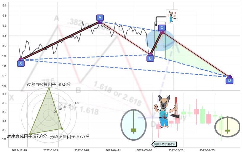 ➣ 未完成【蝴蝶】形态起点X: 2022-04-26, 已到达C点: 2022-08-11, 预测最终D点: 2022-09-29, 共109交易日