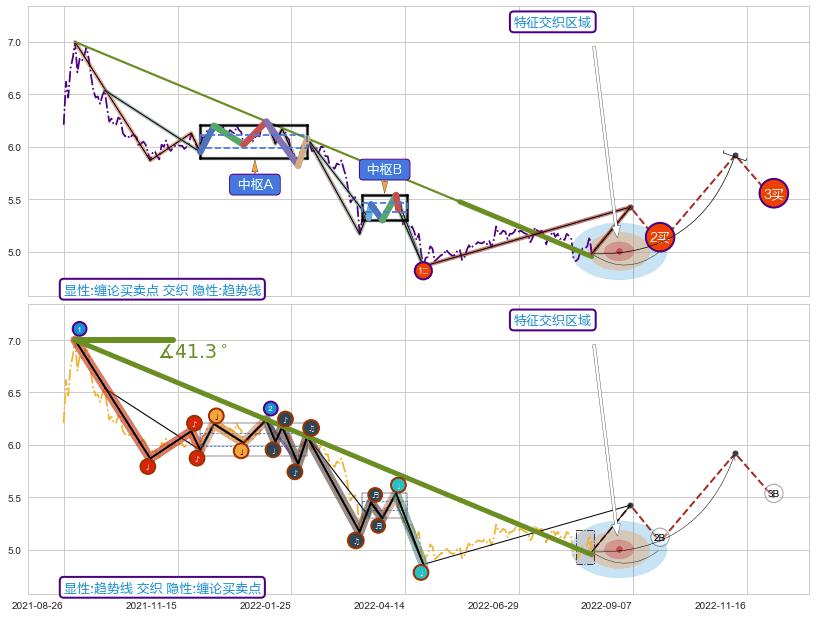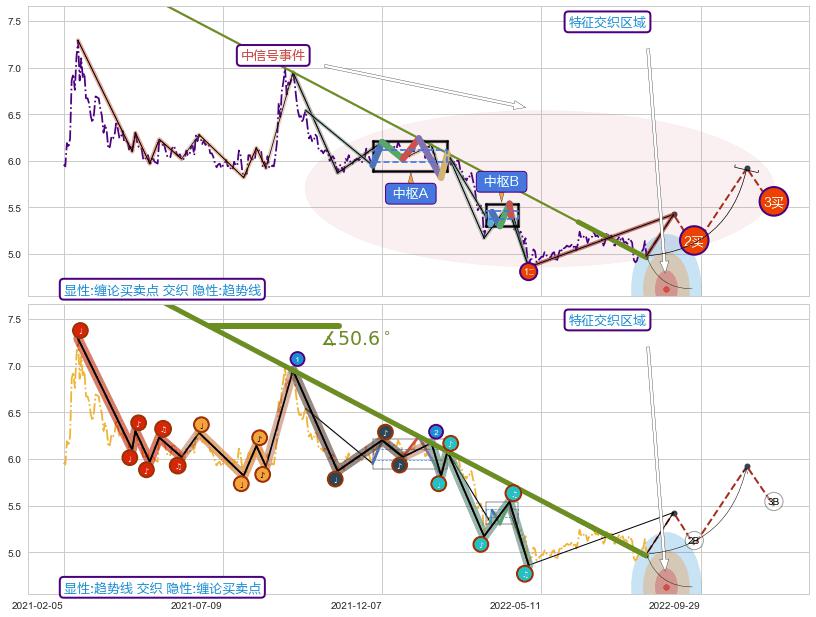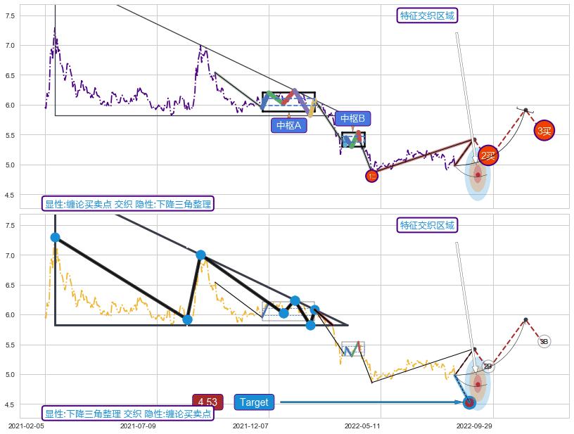 ➣ 缠论中枢点:猜想破位中枢B后持续下拉 → 下跌 → 破位中枢B支撑 → 持续趋势跟踪