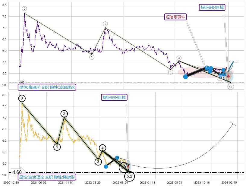 ➣ D点拟合预测价格4.69,距离最后交易收盘价格4.98相差 -5.88%