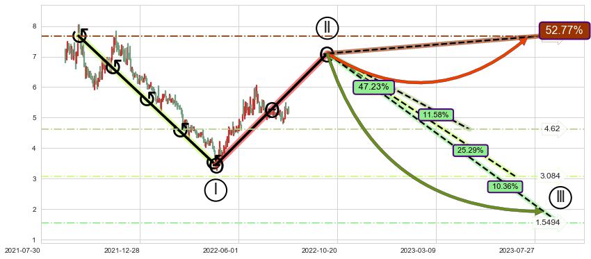 ➣ c.1: 当前c浪回调位置(2022-08-09, 5.28),仍然有回调空间