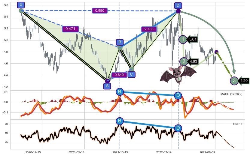 ➣ 已完成【蝙蝠】形态起点X: 2020-10-12, 终点D: 2022-04-06, 共362交易日
