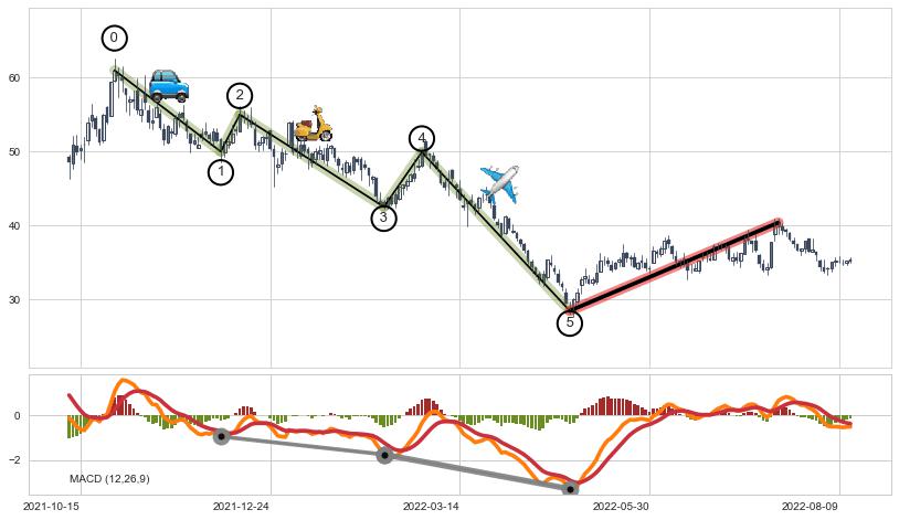 ➢ 波浪理论:猜想达到c点后小反弹终止反转下跌 → 下跌 → 【拐点】临近 → 阶段均值回复结束后继续大周期趋势跟踪