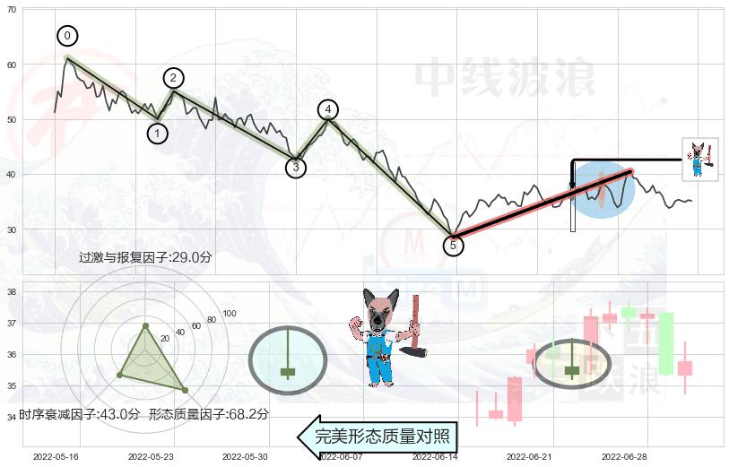 ➢ 🕰 价格走势在2022-06-28至2022-06-29期间形成吊颈线(上吊线),残存影响值:-2.72