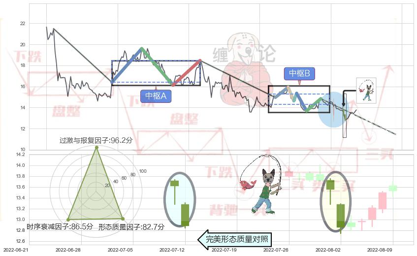 ➣ 下跌螺旋桨 + 缠论中枢点破位中枢B支撑下拉信号叠加后【信号初始稳固度】中等,【看空】信号叠加【可信度影响中等】