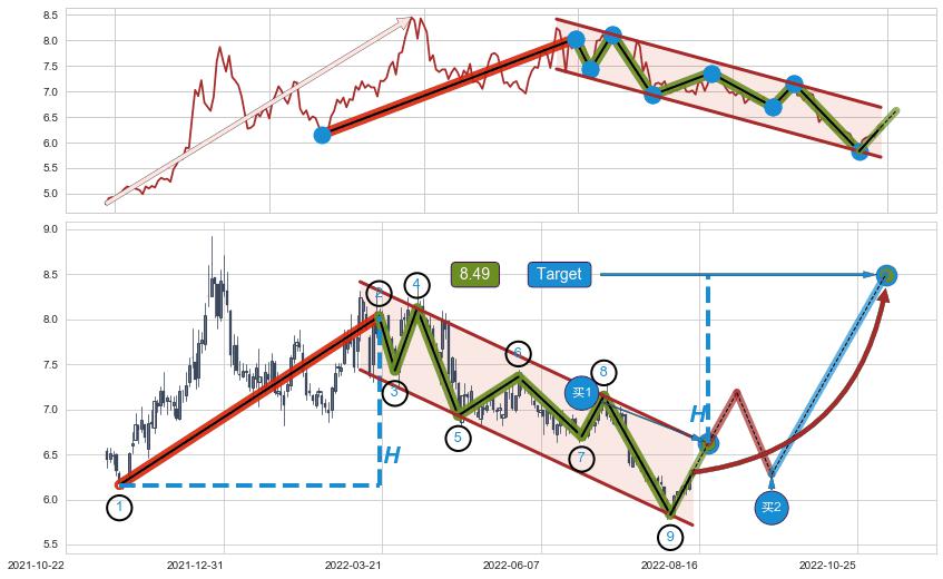 ➢ AI预测: 假定反转如期而至,第❸价格目标位置(2022-10-20, 8.45)