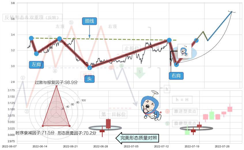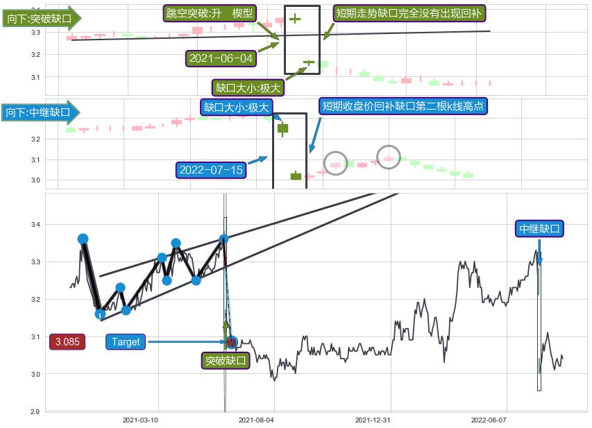 ➣ 收盘价(2022-07-20: 3.080 )→回踩→第二根k线高点(2022-07-15: 3.040 )