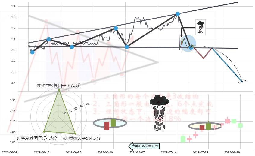 ➣ AI智能: 预测【大方向抉择→空方占优】扩散三角形反转向下突破,预测将在2022-08-17突破颈线