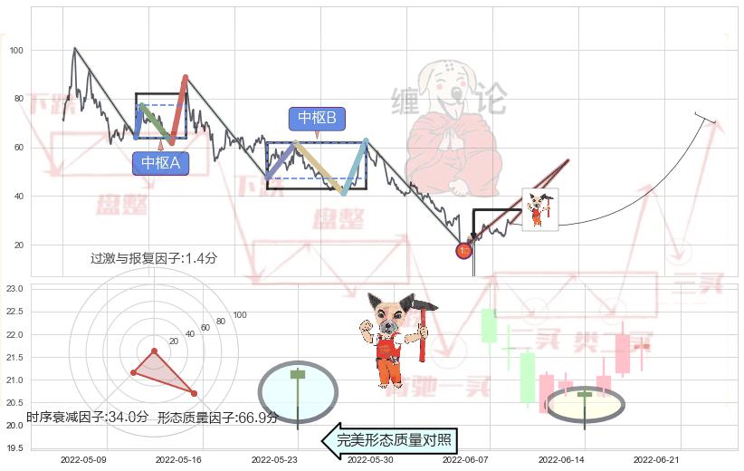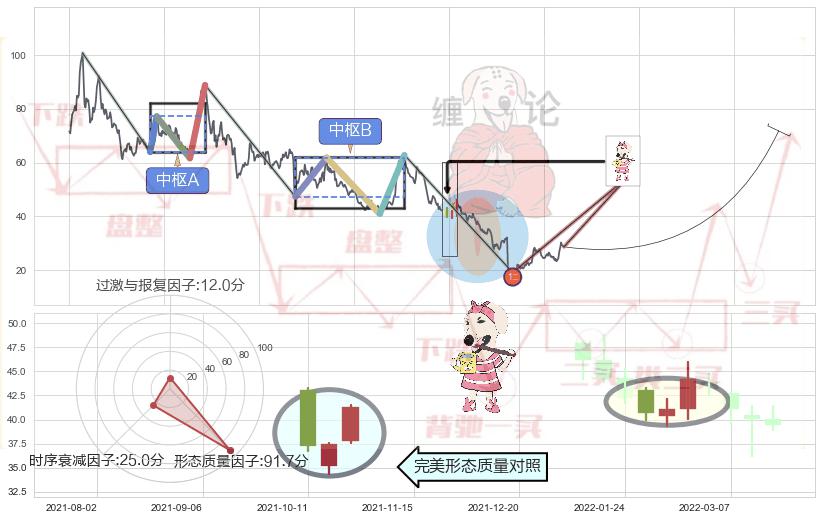 ➣ 底部尽头线(上山虎) + 缠论买卖点下降缠:1买反弹拐点信号叠加后【信号初始稳固度】偏低,【看多】信号叠加【可信度影响降权】