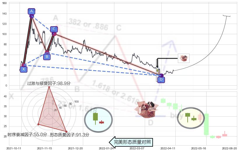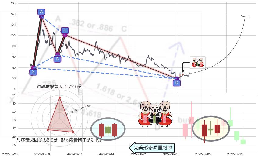 ➢ 锤头线(锤子线) 🔜 谐波蝴蝶d拐点上涨支撑 综合量化分数:57.97 【偏多】