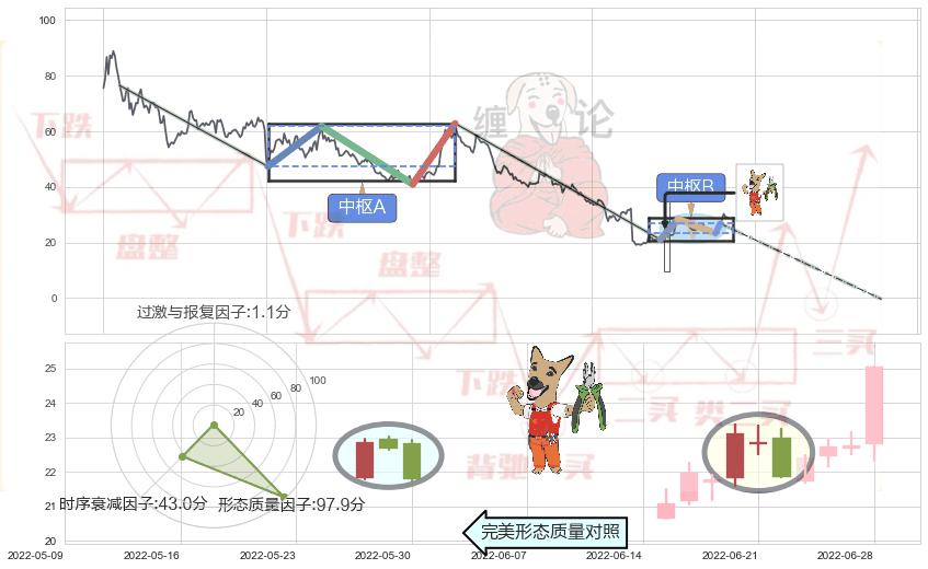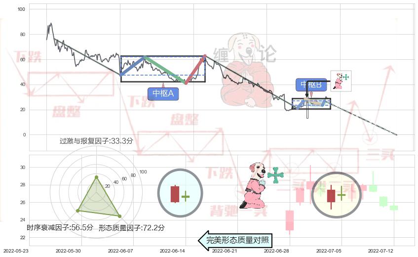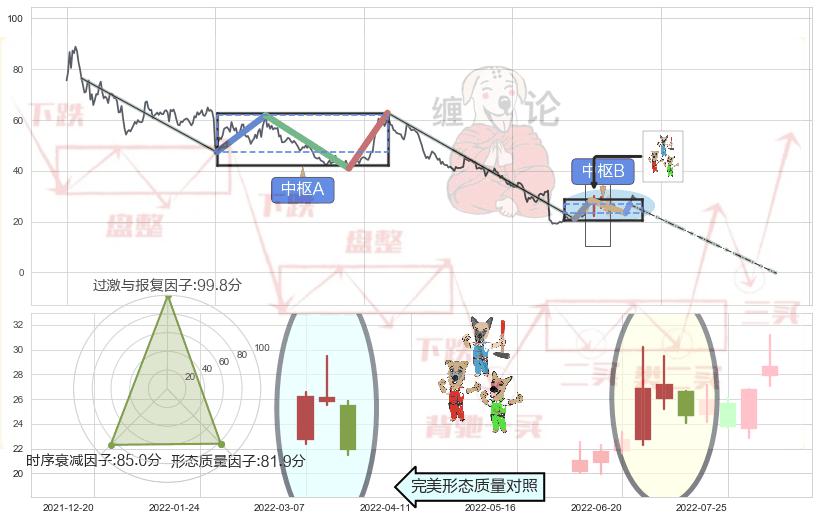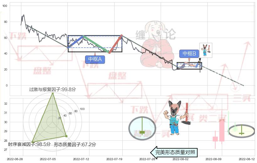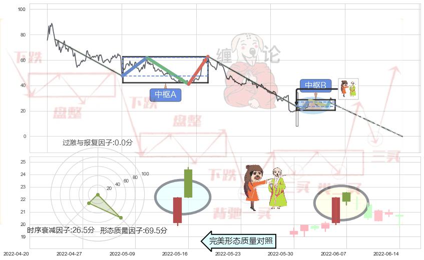 ➢ 墓碑十字线(墓碑线) 🔜 缠论中枢点破位中枢B支撑下拉 综合量化分数:46.70 【中性】
