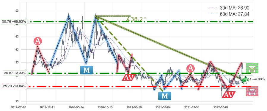 ♘ 阻力价格位30.87,可信任强度86.08%,距离最后交易2022-08-12形成的收盘价格29.87相差 +3.33%