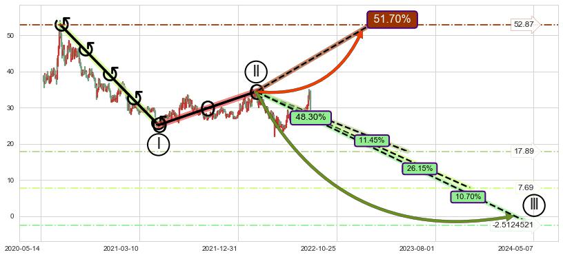 ➢ 大趋势反转(突破5浪起点位置)概率51.70%