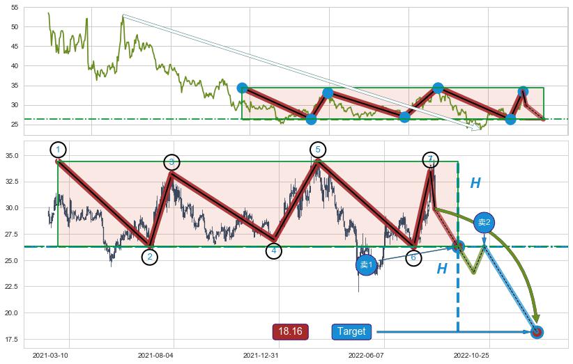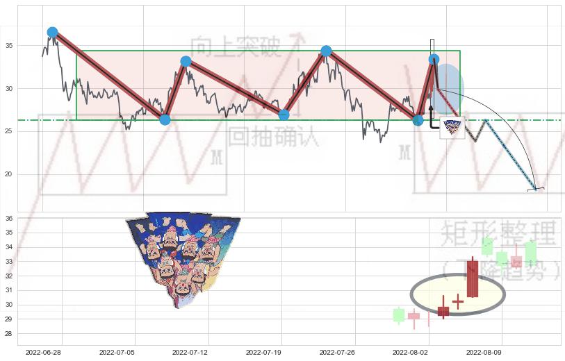 ➢ 下跌矩形整理:猜想临近关键支撑位突破点 → 临近拐点下跌 → 风险信号 → 大趋势均值回复