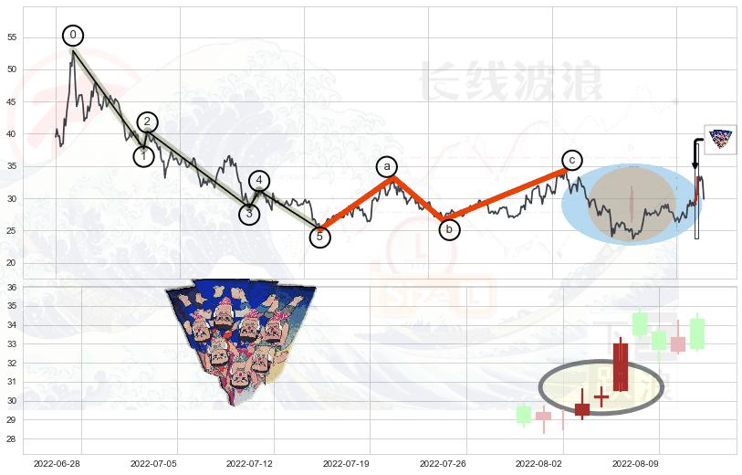 ➢ 波浪理论:猜想达到c点后小反弹终止反转下跌 → 下跌 → 【拐点】临近 → 阶段均值回复结束后继续大周期趋势跟踪