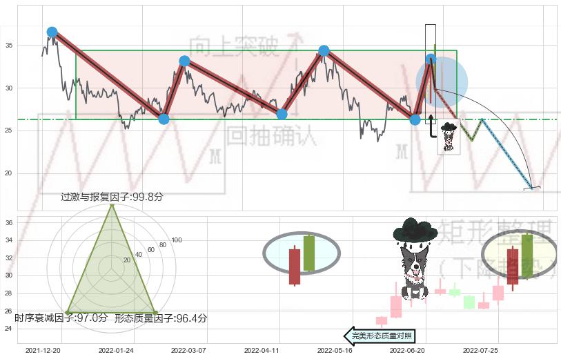 ➢ AI智能: 预测【多方力量耗尽】,矩形中继整理向下突破,预测将在2022-09-13突破矩形提供的颈线