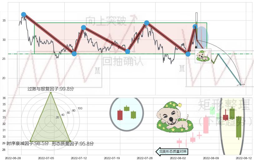 ➢ 黄昏之星(夜星) 🔜 下跌矩形整理临近支撑猜想转换阻力下跌 综合量化分数:49.22 【中性】