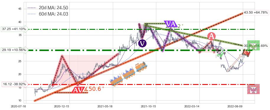 ➢ 【仅预测突破】最后价格:26.40与预测突破价格:30.58→【空间较大】后续最小【整理】第一目标价格→(2022-12-19: 46.51 )