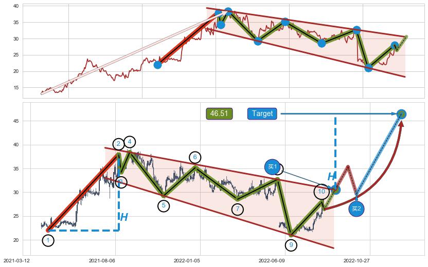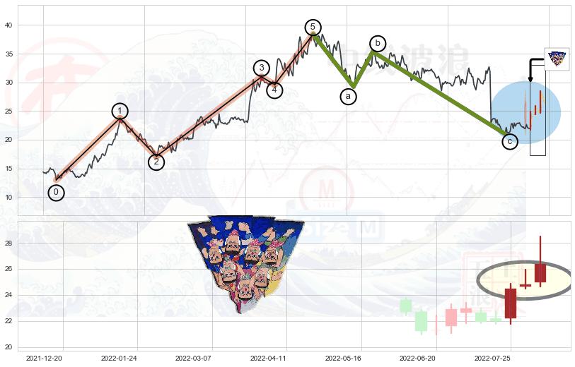 ➣ 波浪理论:猜想达到c点后小回调终止反转上涨 → 上涨 → 【拐点】临近 → 阶段均值回复结束后继续大周期趋势跟踪