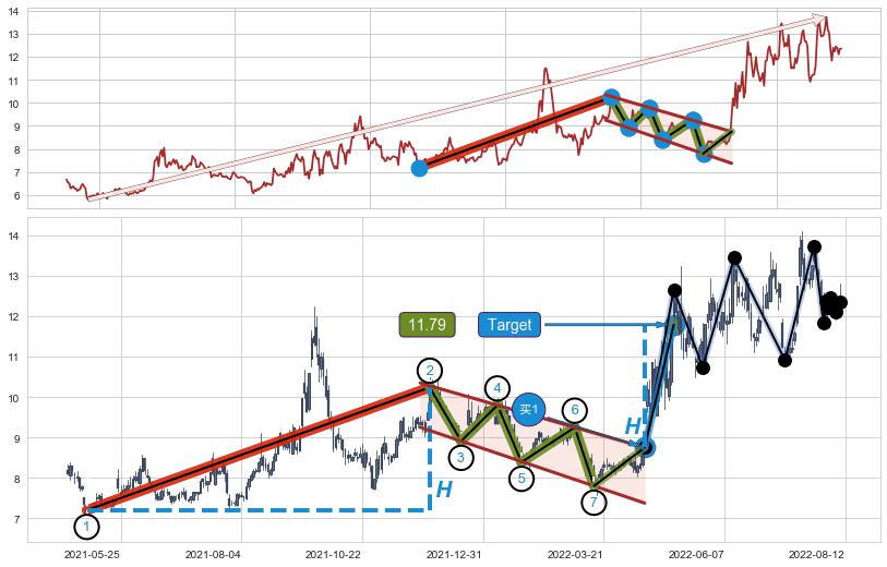 ➣ 最小中继整理涨幅→𝐇: 3.040 (𝐇旗杆的长度:旗杆起点→顶点)