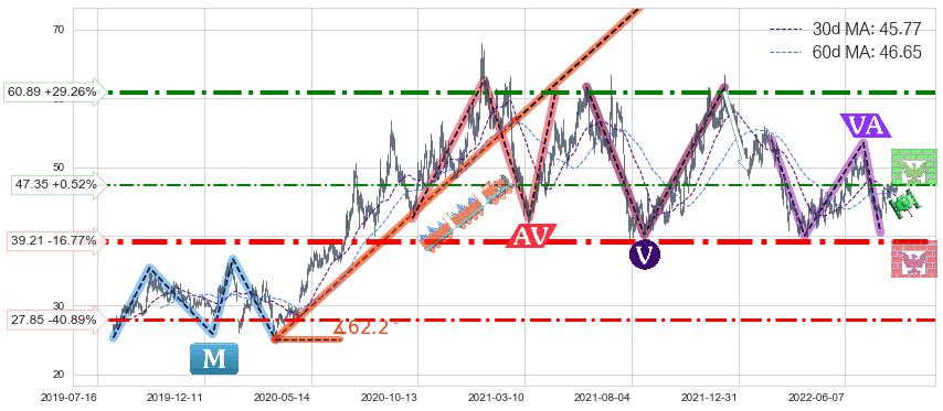 ♘ 阻力价格位47.35,可信任强度46.59%,距离最后交易2022-08-12形成的收盘价格47.11相差 +0.52%