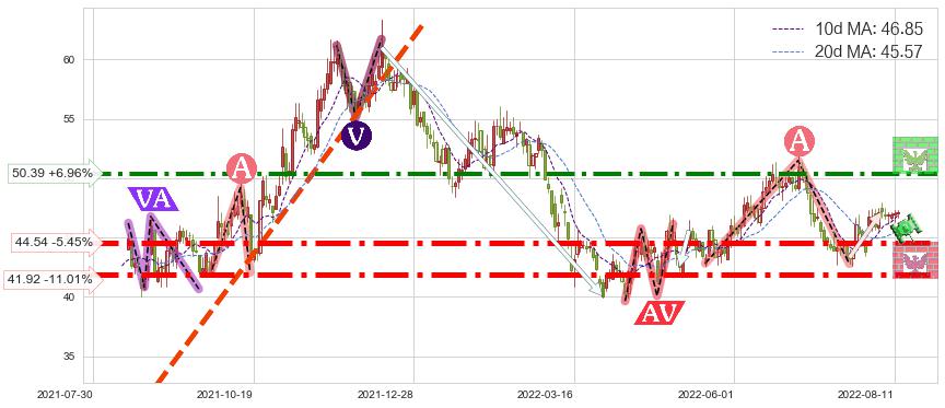 ♘ 阻力价格位50.39,可信任强度83.73%,距离最后交易2022-08-12形成的收盘价格47.11相差 +6.96%
