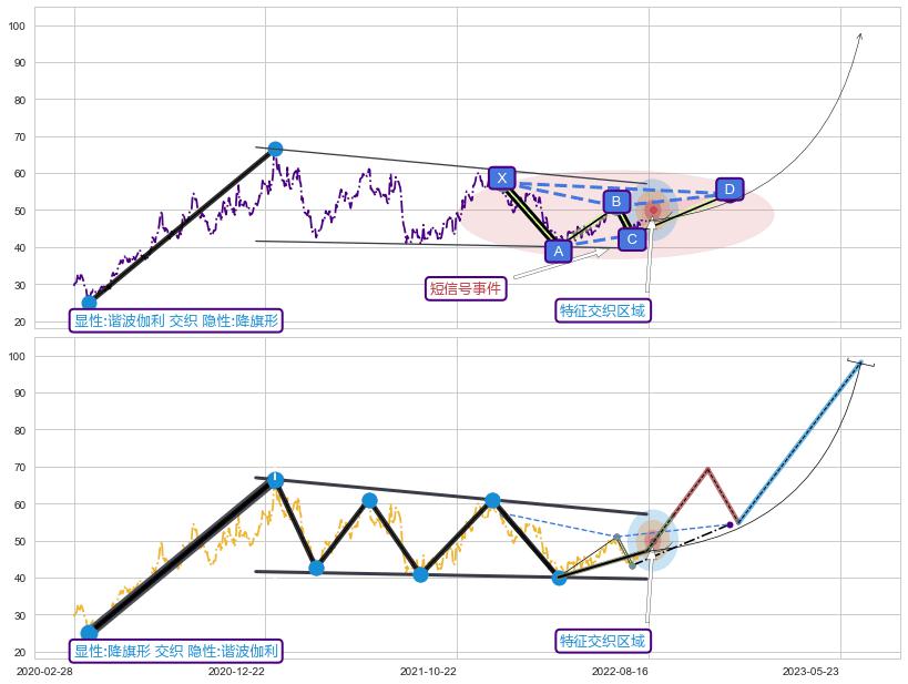 ➢ 谐波伽利属【短级别信号事件】上涨矩形整理属【长级别信号事件】长短周期组合信号事件, 短长事件长度比30.40%