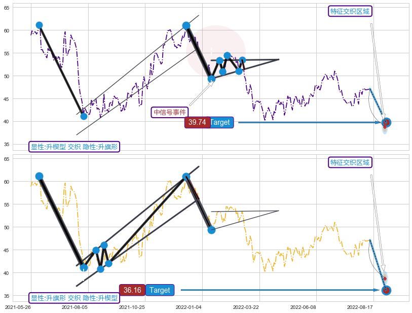 ➢ 升楔型属【短级别信号事件】上涨矩形整理属【长级别信号事件】长短周期组合信号事件, 短长事件长度比10.40%