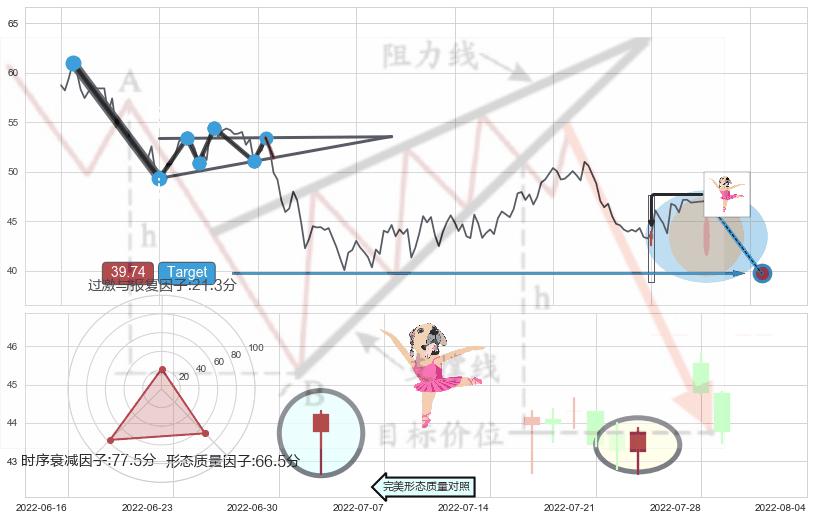 ➢ 看跌(高位倒锤头)流星线 🔜 缠论中枢点破位中枢B支撑下拉 综合量化分数:47.18 【中性】