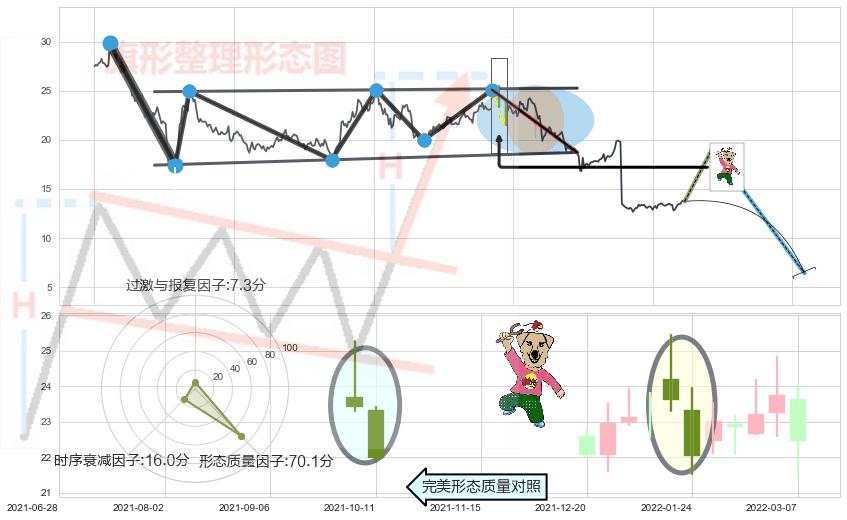➢ 看跌(高位倒锤头)流星线 🔜 升旗形支撑破位转换阻力下跌 综合量化分数:49.08 【中性】