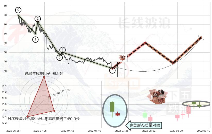 ➢ 🕰 价格走势在2022-07-18至2022-07-25期间形成顶部尽头线(下山虎),残存影响值:-4.91
