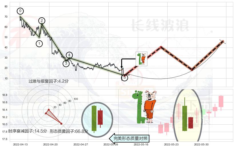 ➢ 锤头线(锤子线) + 波浪理论下跌浪:浪5反弹拐点信号叠加后【信号初始稳固度】中等,【看多】信号叠加【可信度影响中等】