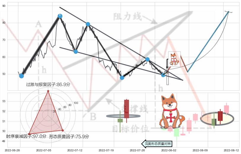 ➢ 【买1】: 激进型 买点 →(2022-08-11: 51.48 )形成突破降🚩楔型【整理】形态