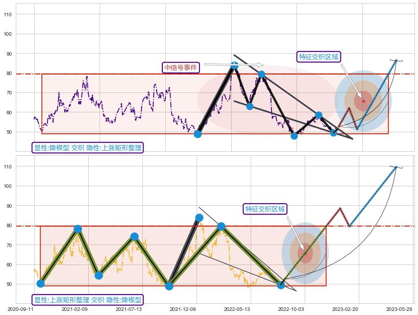 ➢ 降楔型属【中级别信号事件】上涨矩形整理属【长级别信号事件】中长周期组合信号事件,中长事件长度比47.46%